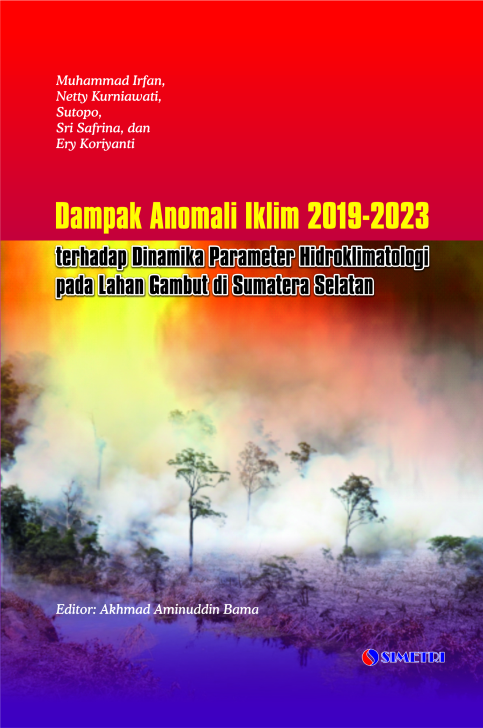 Buku ini ditulis berdasarkan hasil pengamatan dan penelitian Tim Penulis yang dilakukan dari Tahun 2020 hingga 2024. Secara garis besar buku ini membahas tentang dampak anomali iklim tahun 2019-2023 terhadap dinamika parameter hidroklimatologi pada lahan gambut di Sumatera Selatan. Parameter tersebut adalah curah hujan, groundwater level, soil moisture, dan titik api. Bencana kekeringan berkaitan dengan peristiwa alam El Niño dan/atau IOD+, sedangkan limpasan air berkaitan erat dengan peristiwa alam IOD dan/atau La Niña. Hasil kajian ini diharapkan dapat menghasilkan nilai minimum dan maksimum parameter hidroklimatologi pada keadaan normal, saat ada fenomena IOD+, dan saat ada fenomena La Niña.